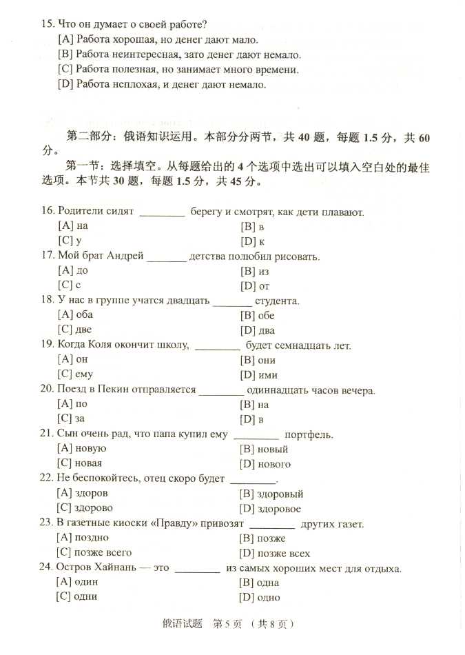 2011年全国成人高考高起点《俄语》试题及答案