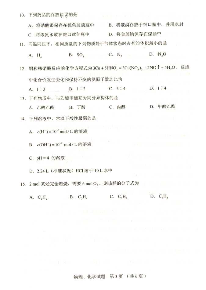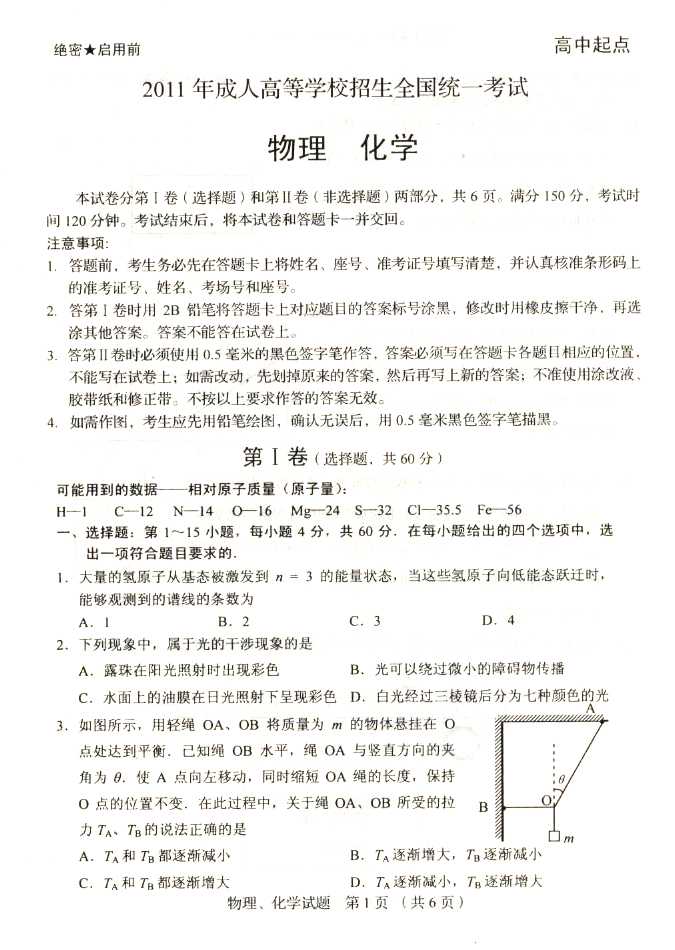 2011年全国成人高考高起点《物理化学》试题及答案