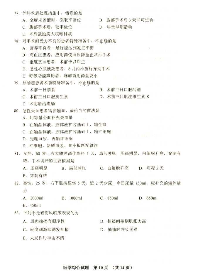 2011年全国成人高考专升本《医学综合》试题及答案