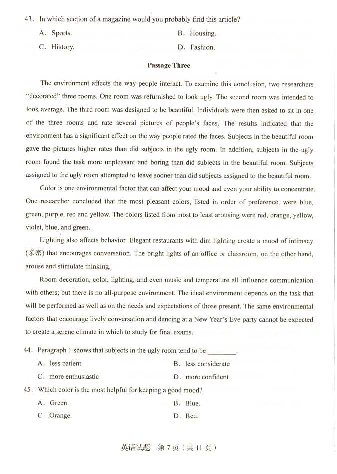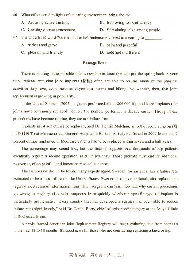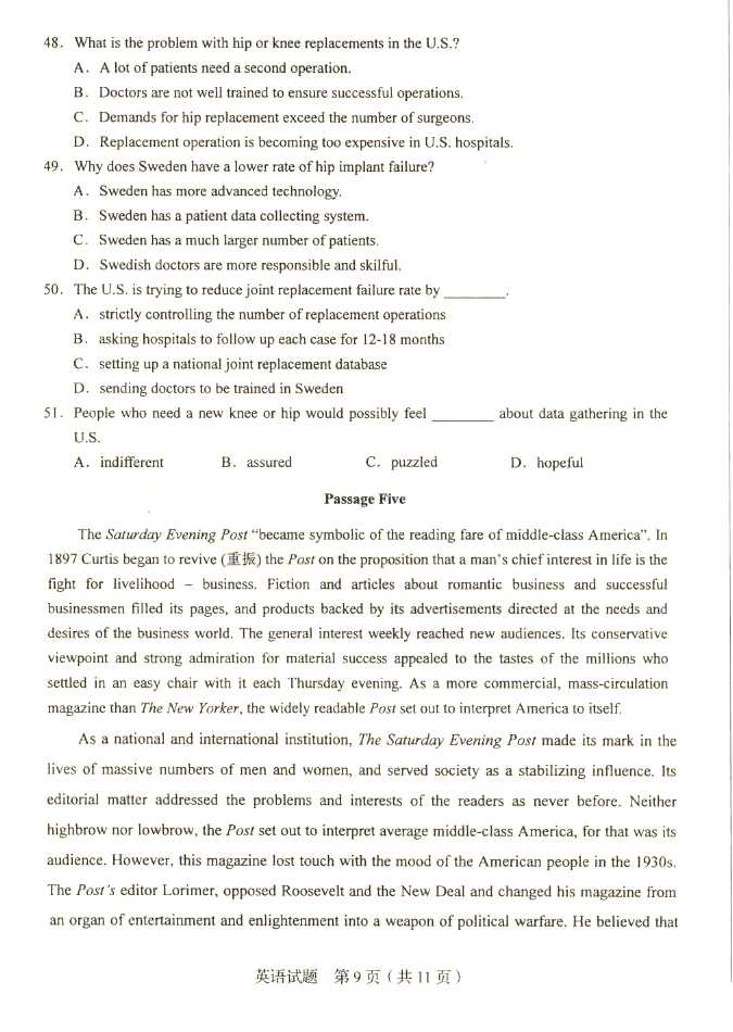 2011年全国成人高考专升本《英语》试题及答案
