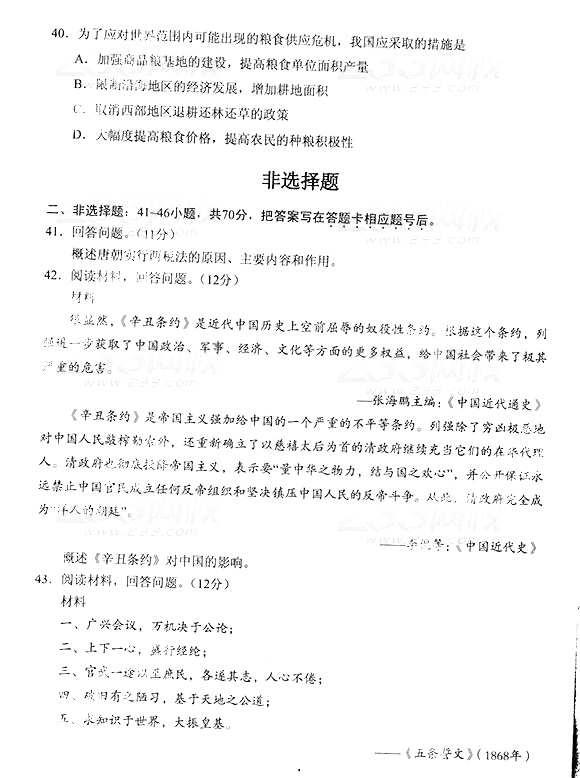 2014年成人高考高中起点《数学》(文史)真题及答案