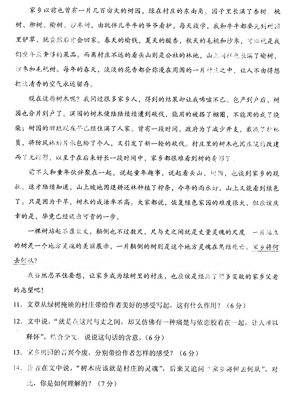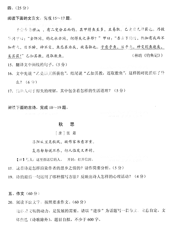 2014年成人高考高中起点《语文》真题及答案