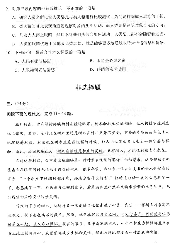 2014年成人高考专升本《大学语文》真题及答案