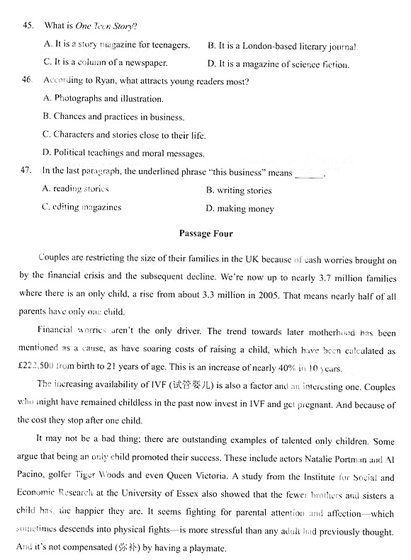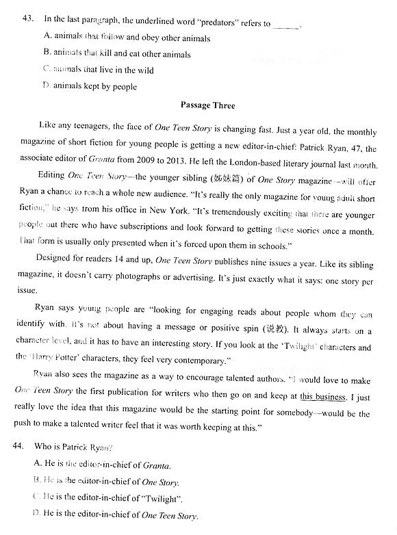 2014年成人高考专升本《英语》真题及答案